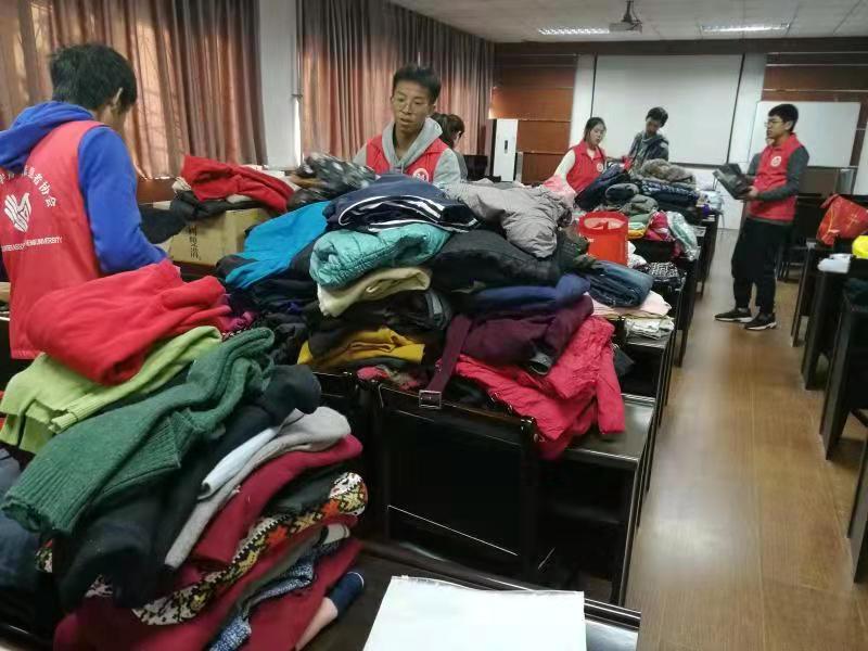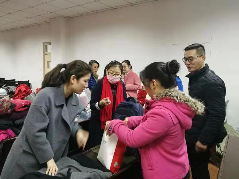 经过前期的精心筹备、广泛动员,该活动得到了广大教师的积极响应。大家将家里闲置的御寒衣物、书包、图书等捐献出来,希望能给贫困地区的人们带去丝丝温暖,为“精准扶贫”略尽绵薄之力。老师们早早将所捐物品清洗消毒,设身处地的考虑什么样的衣物是他们真正需要的、用起来没有心理障碍的,有的老师甚至带来了全新的衣物、书包等。一些老师还早早来到会议室协助青协的同学们分类整理所捐物品。