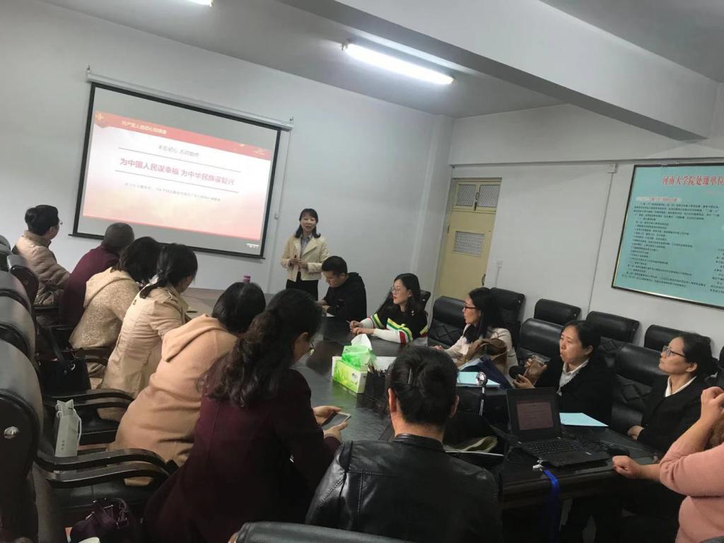 张聪沛分别从“共产党人的初心和使命”、“基层教育工作者的初心和使命”以及“做新时代好老师”三个层次展开,层层深入。首先,她指出,作为共产党人,要牢记初心和使命,不忘心中有党,牢筑忠党之魂,不忘心中有民、深怀为民之心,不忘心中有责、扛起担当之责,不忘心中有戒、严守纪律规矩。其次,作为基层教师党员,我们也要牢记教师的使命与担当,守好自己的责任渠、种好自己的责任田。最后,结合身边的具体事例,她再次强调,教师是立教之本,兴教之源。作为新时代的教师,要以党的十九大精神为指引,立足岗位,开拓进取,学懂弄通做实,努力争做深受学生欢迎的新型合格教师。