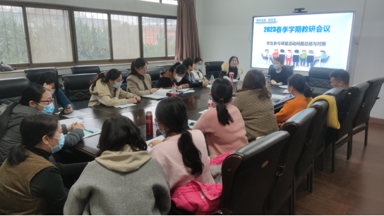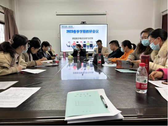 教而不研则愚,研而不教则虚。为进一步营造浓厚的教研氛围,促进教育教学水平的提升,扎实推进2023年春季学期各项教学工作,3月16日下午快猫视频 视听说第一教研室全体教师在部会议室开展了 “课堂教学难点分析与对策” 主题教研会议,会议由教研室主任郭皓主持。