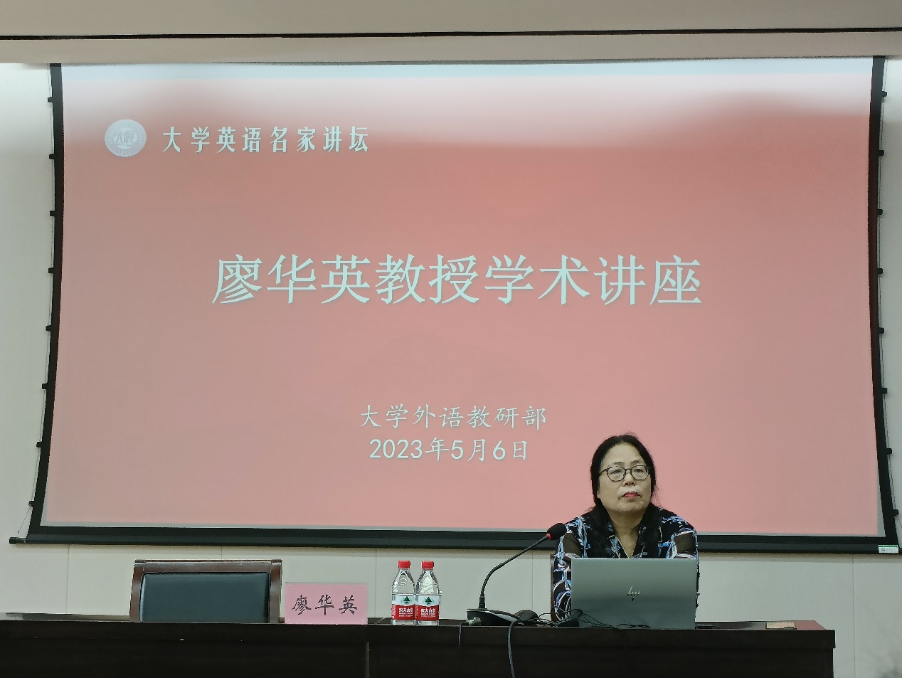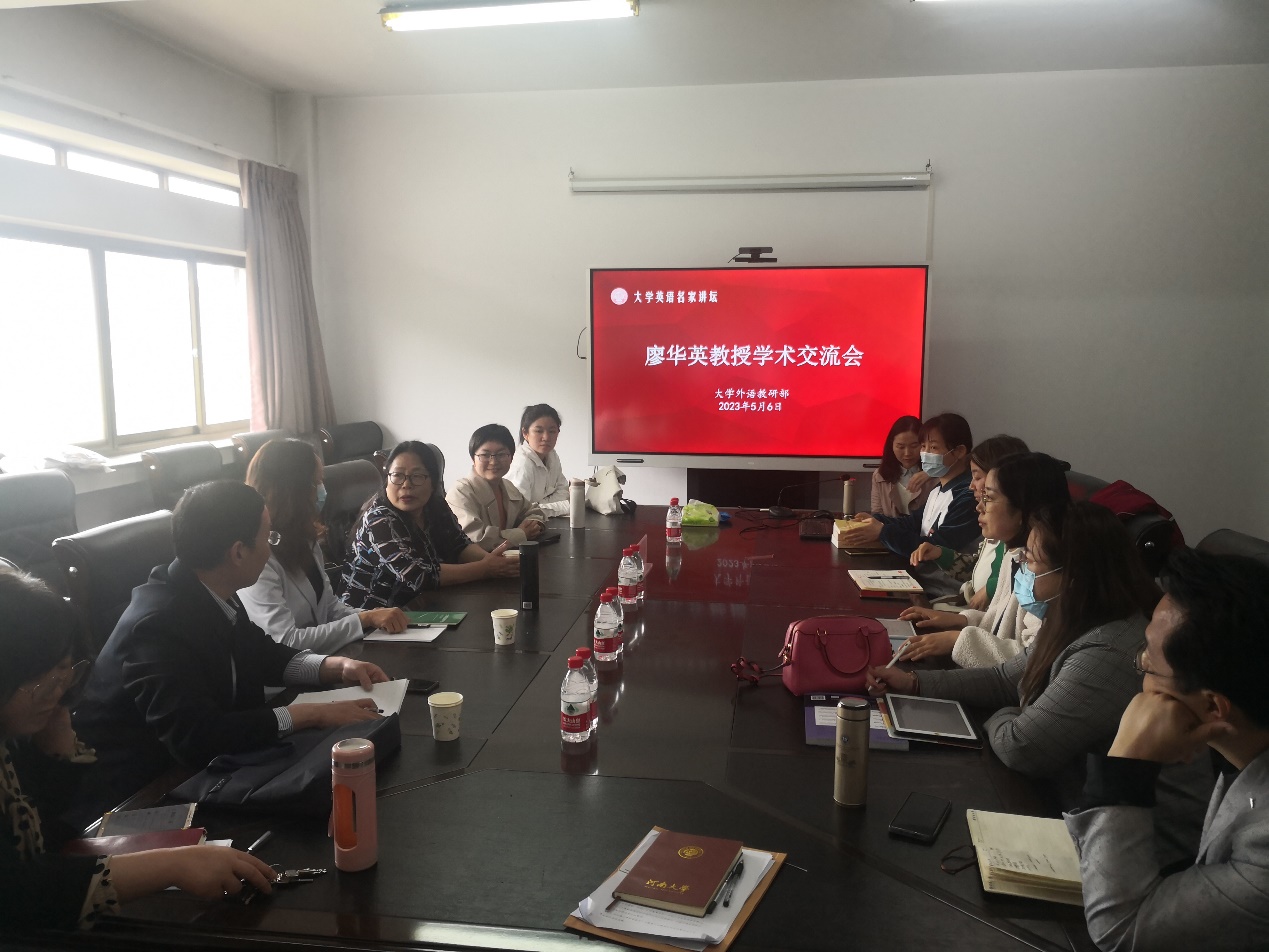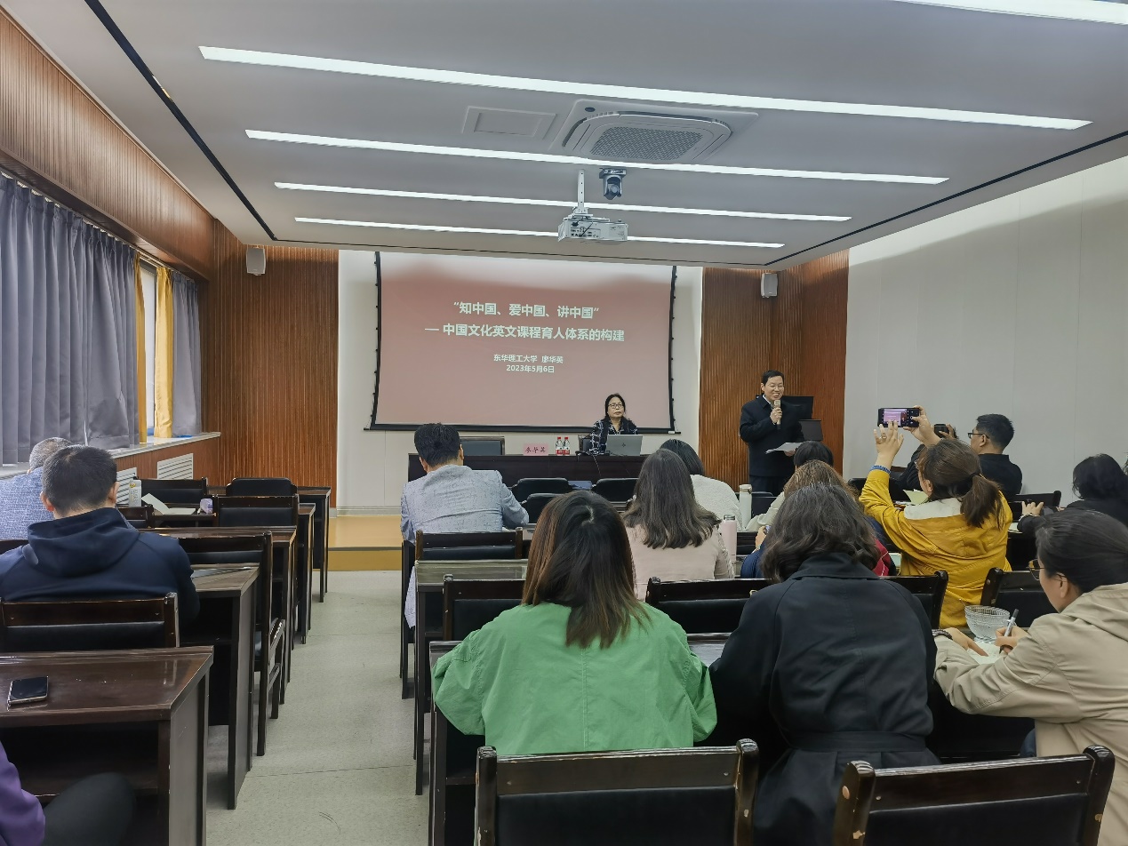 5月6日上午,快猫视频 在部会议室举行大学英语名家讲坛,邀请教育部课程思政示范课教学名师、国家线上一流课程、首届国家级社会实践一流课程和首批教育部课程思政示范课程负责人、东华理工大学外国语学院廖华英教授以“‘知中国、爱中国、讲中国’—中国文化英文课程育人体系的构建”为主题做分享。快猫视频 党委书记、主任杨剑波主持本次讲座,七十余位老师参与并进行了深入交流与探讨。