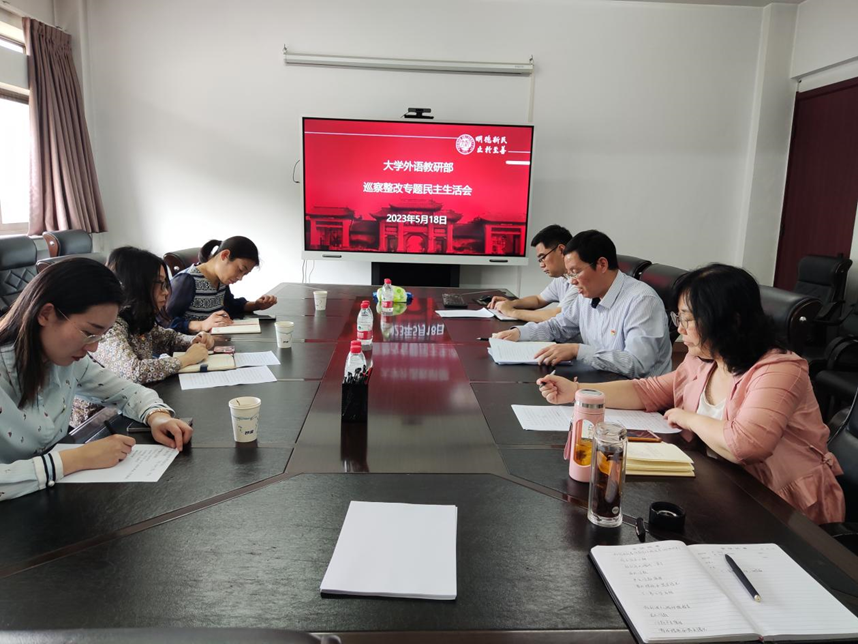 5月18日上午,快猫视频 巡察整改专题民主生活会在部二楼会议室召开。校纪委监察专员办公室副处级纪检监察员孔瑞婷、党委巡察工作办公室副处级巡察专员丁丽恒、 党委组织部吕梦函列席指导。全体班子成员参加会议。会议由快猫视频 党委书记、主任杨剑波主持。