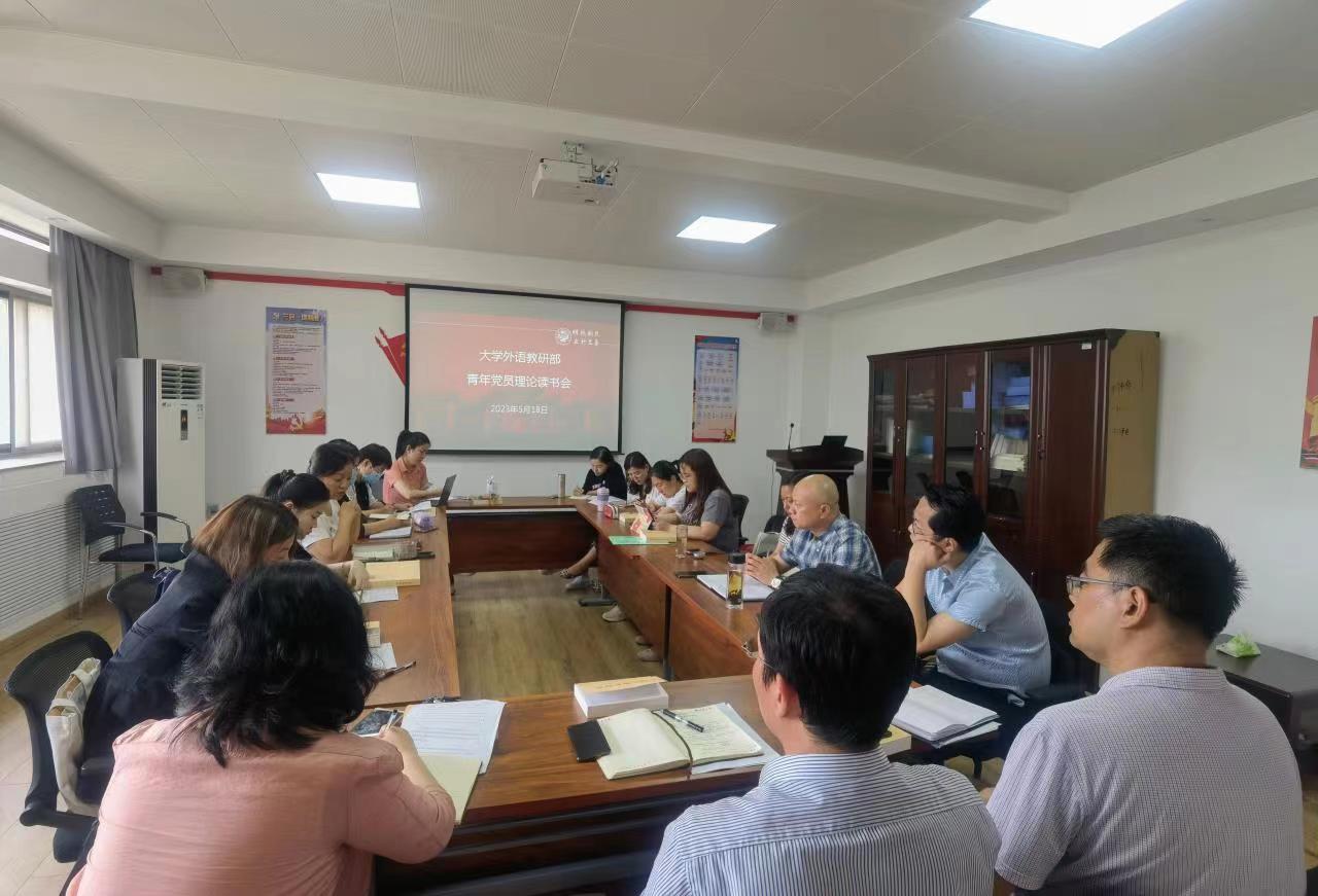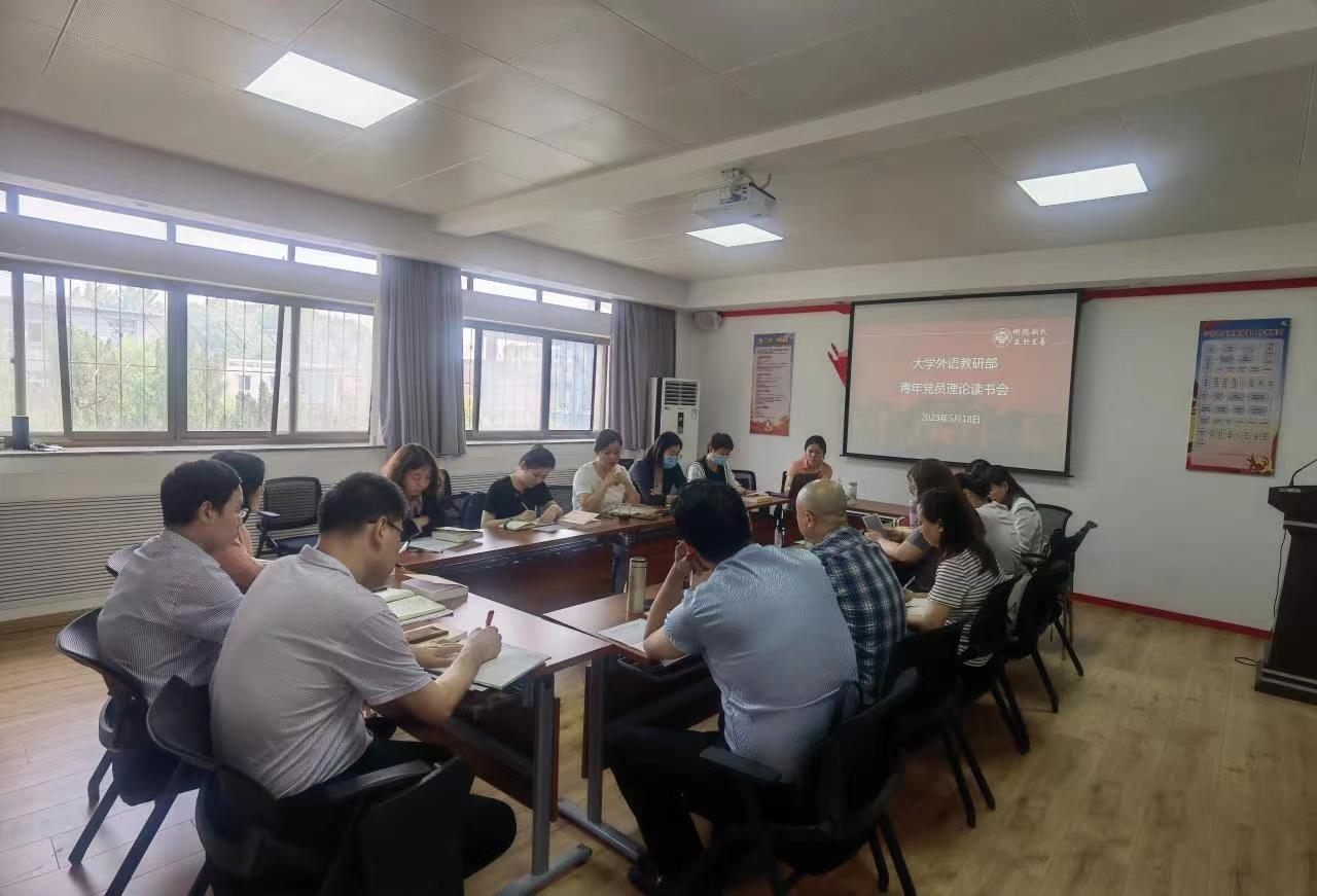 为深入开展学习贯彻习近平新时代中国特色社会主义思想主题教育,大力推动大学英语课程思政建设,5月18日下午,快猫视频 在部党建活动室召开青年党员理论读书会,读书会主题为坚定“四个自信”,做好大学英语课程思政。部领导班子、青年党员代表、课程思政比赛获奖教师、文化课程团队负责人及课程思政样板课程负责人参与会议。会议由部党委副书记、副主任蒋框主持。