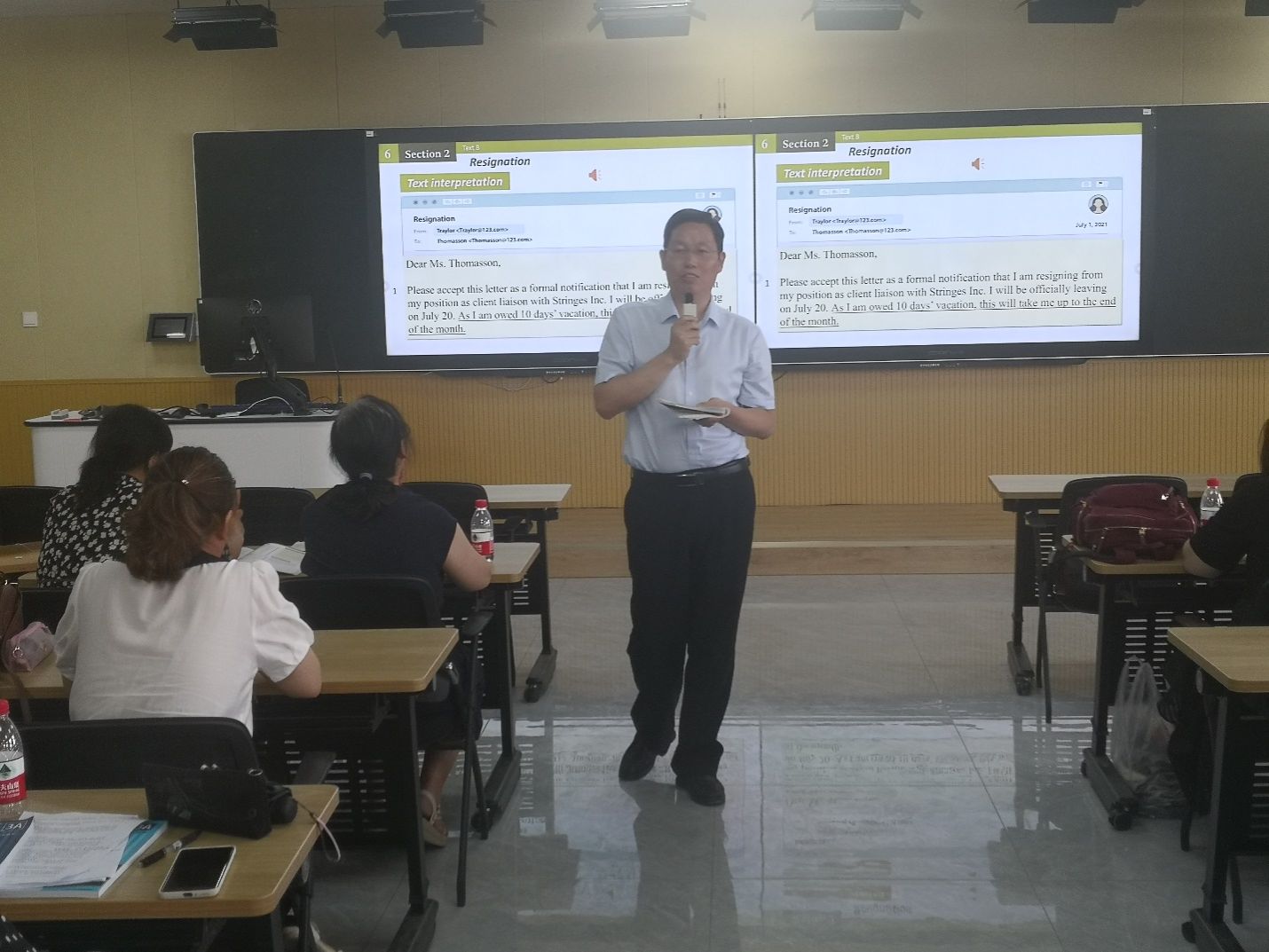 最后,外语部党委书记、主任杨剑波做总结发言。他首先感谢了老师们的辛勤付出和充分准备,指出此次暑期备课形式新颖,成效显著,大大增强了全体教师上好新课程的信心。同时,他还对老师们能够运用教学理论指导教学设计与实践表示赞赏,鼓励大家能够抓住备课过程中的灵感,与教学研究结合,创造更多教研成果,打造一流课程,不断提升育人效果,奋力推动学校“双一流”建设。