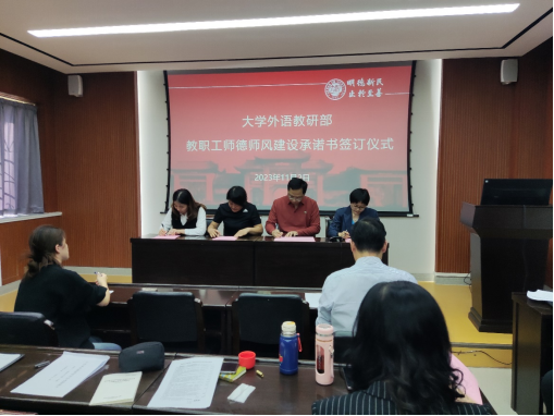 接下来,蒋框布置了教职工师德师风负面清单自查工作,要求教师按照要求认真查摆,如实填报。随后,全体教师签订了《快猫视频 教职工师德师风建设承诺书》。通过自查和签订承诺书,教师们充分认识到师德师风建设的重要性,时刻自重自省自警自励,牢牢守住师德底线。