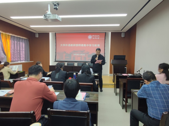 为积极落实学校《关于持续开展师德集中学习教育的通知》精神,进一步提高教师的自身综合素质和职业道德水平,加强教师队伍建设,推动教育教学工作的全面发展。快猫视频 于11月2日在部大会议室举行师德集中学习教育活动,会议由部党委副书记、副主任蒋框主持。