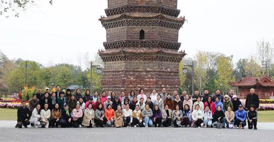 老师们以教研室为单位,鱼贯列队而行。大家兴致勃勃,边走边赏,谈工作、聊生活,品咂着五颜六色、形态各异的盛放菊花,幽微的菊香略过脸庞,沁入心脾。浩浩荡荡的队伍也融入了铁塔,成为了一抹流动的景色。大家不断感叹,菊花不愧为花中四君子之一,其型多、色美、香幽、用实、品高,使得开封人年年看,年年叹,年年赞。如今铁塔公园犹如广大河大师生的“后花园”,千年铁塔与百年河大的精神已融为一体,历代河大人也都被誉为“铁塔牌”。
