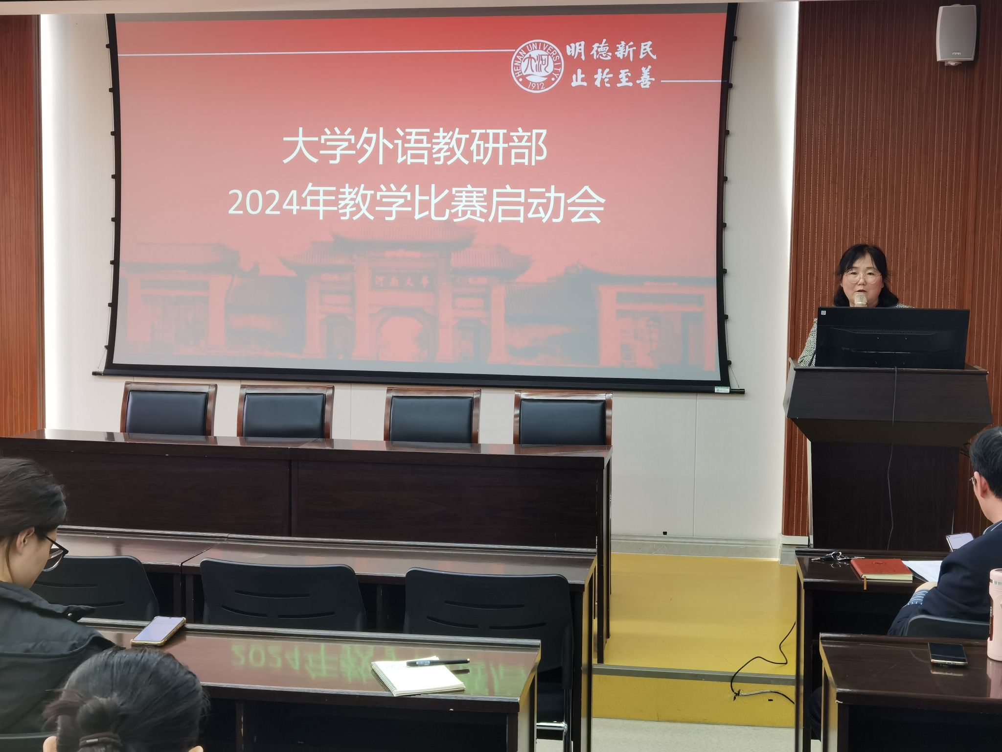 最后由部副主任谢菲带领全体教师学习第八届全国高等学校外语教育改革与发展高端论坛会议精神,会议要求认真贯彻习近平新时代中国特色社会主义思想和党的二十大精神,深入推进外语教育改革,加快建设高等教育强国。谢菲从大学外语与国家战略、落实立德树人根本任务、重构大学外语课程体系、推进AI赋能大学外语教育等四个方面梳理大学外语教育的改革发展方向。随后,谢菲宣布2024年快猫视频 教学比赛启动,鼓励教师努力改进教学理念、提升教学技能,积极参加比赛。