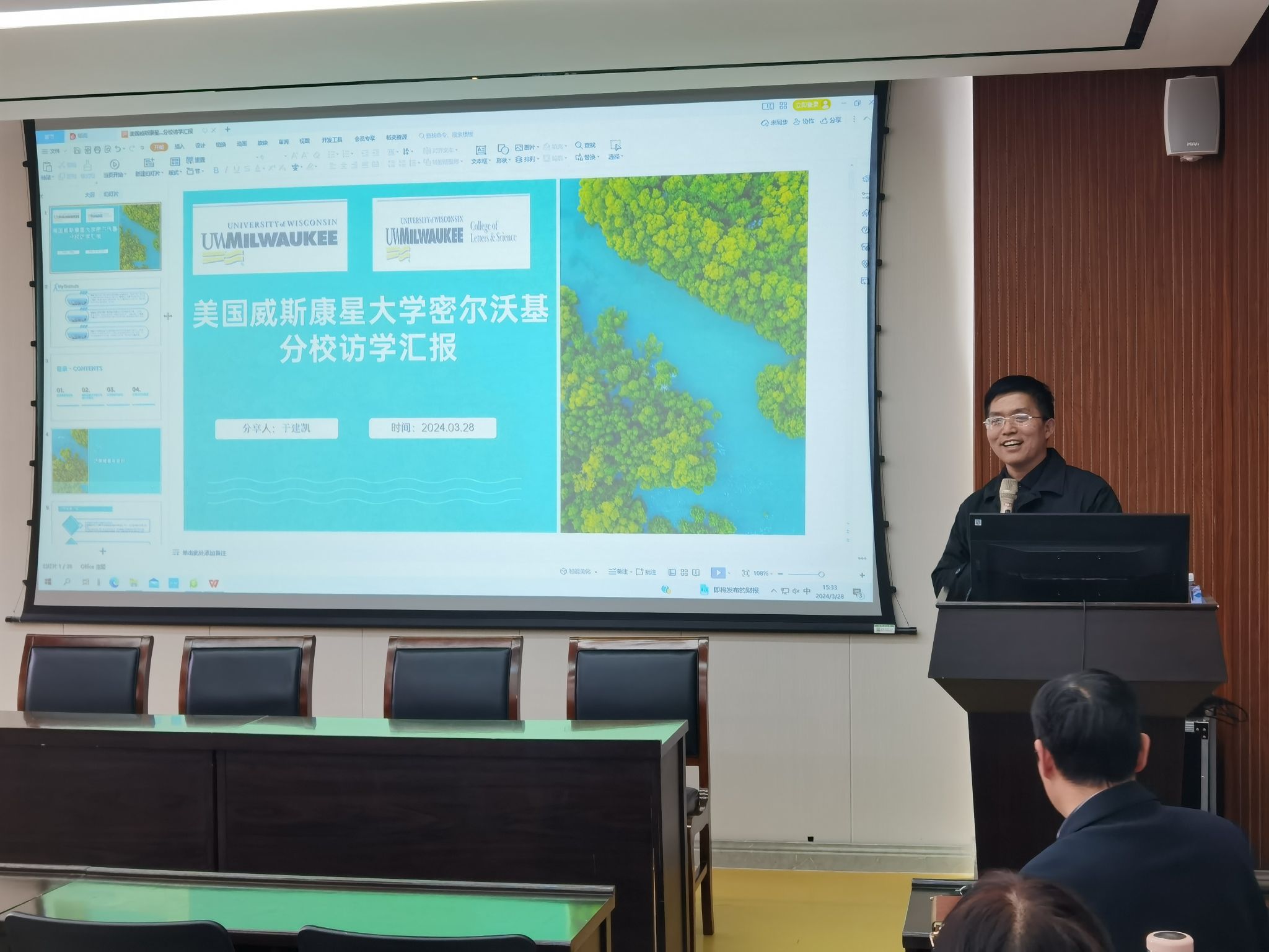 3月28日下午,快猫视频 举行教师国际访学分享汇报会,于建凯和胡静两位老师在外语部会议室向全体教师做了访学分享汇报。2023年秋季学期,于建凯和胡静两位教师分别赴美国威斯康星大学和爱尔兰利莫瑞克大学进行了为期6个月的访问学习。近日,圆满完成访学任务的两位老师已顺利归校,开始投入紧张的教科研工作中。按照快猫视频 访学归国人员相关要求,为分享访学经验,促进学习交流,特举行了本次分享汇报会。