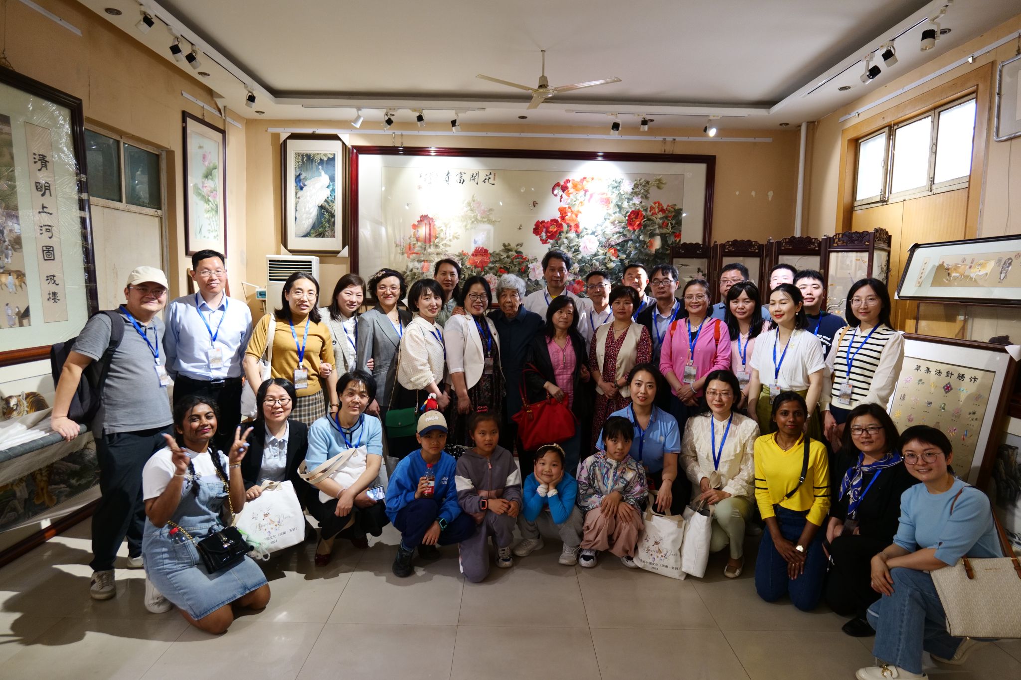 交流结束后,研学营参观了国家级非物质文化遗产项目王素花汴绣展馆和汴京灯笼张展馆,到开封市博物馆进行了现场学习。在汴绣展馆,90岁的非遗传承人王素花亲自接待了研学营的专家和学者们,工作人员热情地向大家介绍了汴绣的历史渊源、技艺特点和传承情况。王素花老人表示,汴绣作为开封的传统文化瑰宝,需要更多的人来了解和传承,希望这次研学活动能让更多的人感受到汴绣的魅力。在汴京灯笼张展馆,这里陈列着各式各样的灯笼,形态各异、色彩斑斓,让人目不暇接。灯笼张承载着丰富的历史和文化内涵。灯笼张传承人张俊涛为大家讲解了灯笼张的历史渊源、制作工艺以及灯笼承载的美好寓意,大家这项传统技艺的精湛和独特赞叹不已。