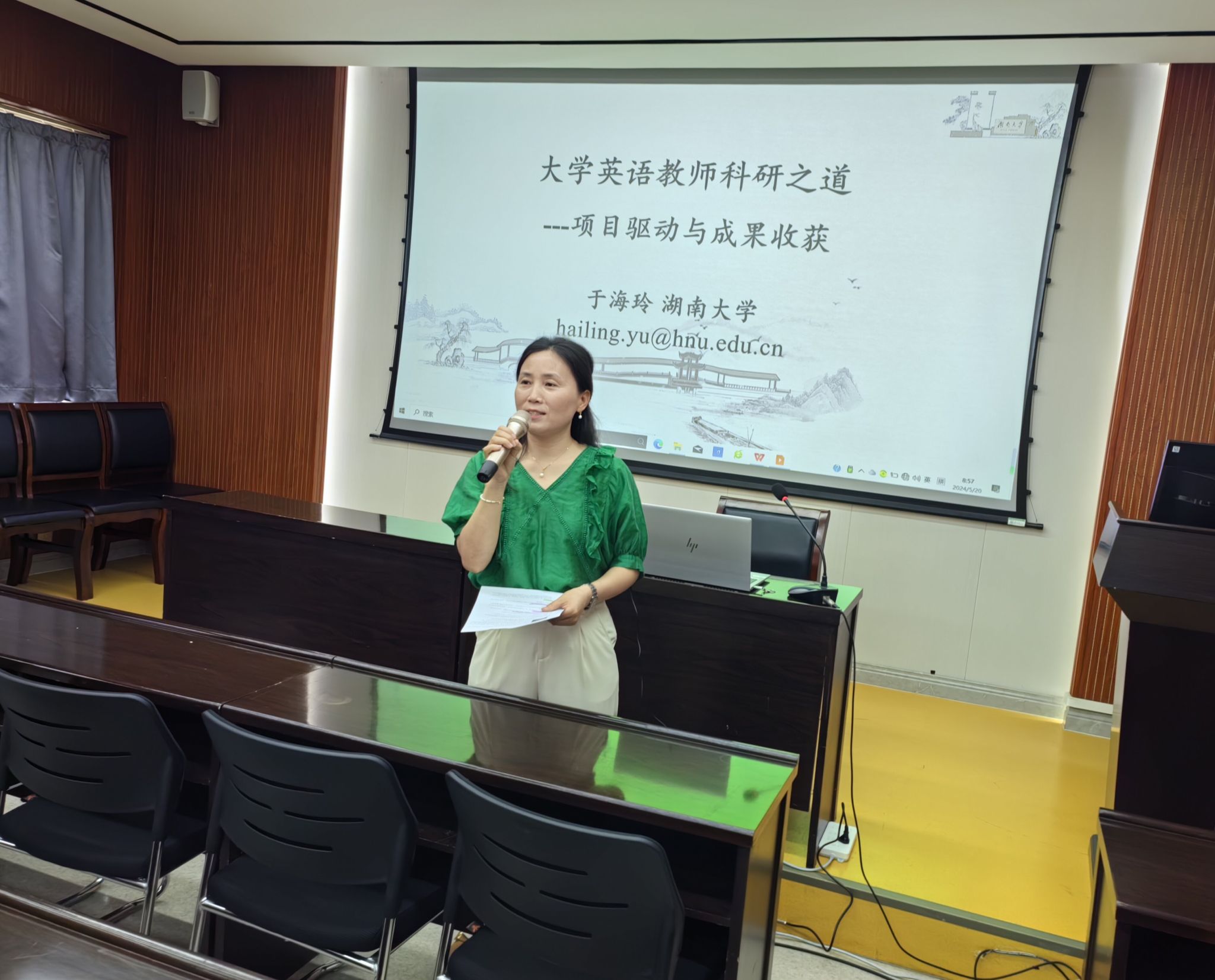 2024年5月20日上午,快猫视频 成功举办“大学英语名家讲坛”学术讲座活动。湖南大学教授、博士生导师于海玲受邀以“大学英语教师科研之道——项目驱动与成果收获”为题进行学术分享。本次讲座由我部副主任白玉杰主持,快猫视频 教师参加了此次讲座。