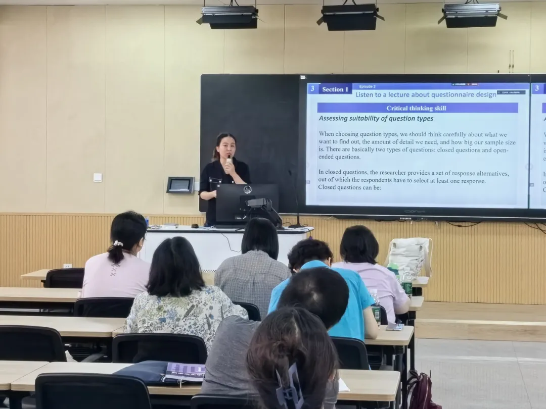 本次研讨会上,外语部李冬青、师小静两位骨干教师分享了他们在学术英语教学中的独到见解和创新实践。李冬青老师围绕第二单元“Hearts and Minds”,通过教授学术写作中的下定义、引用等内容,展示了如何将讲、练、评结合,学一点、用一点,逐步提升学生的学术产出能力。她强调了课程思政的软性融入,以潜移默化的方式实现育人目标。