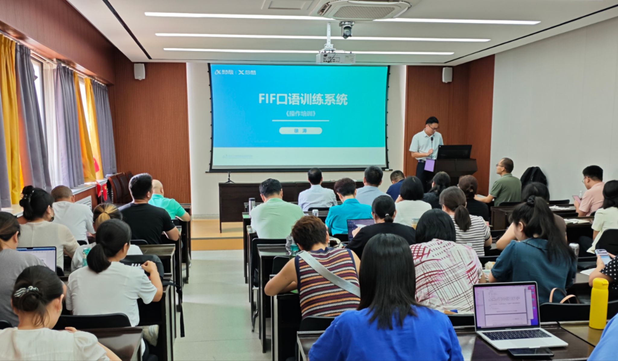 接下来,会议进行口语训练系统专题培训。在学校的大力支持下,快猫视频 引入了科大讯飞FiF口语训练系统,旨在帮助教师灵活开展英语教学,为学生提供一个更加灵活、高效的英语学习环境,助力学生英语口语能力的提升。从APP端到PC端,从教学班管理到AI任务的发布到学生学习过程的监控和学习效果的评估,科大讯飞的工程师为外语部的教师进行了详细讲解,并现场演示了系统的各项功能。外语部全体教师认真参加学习,积极互动。