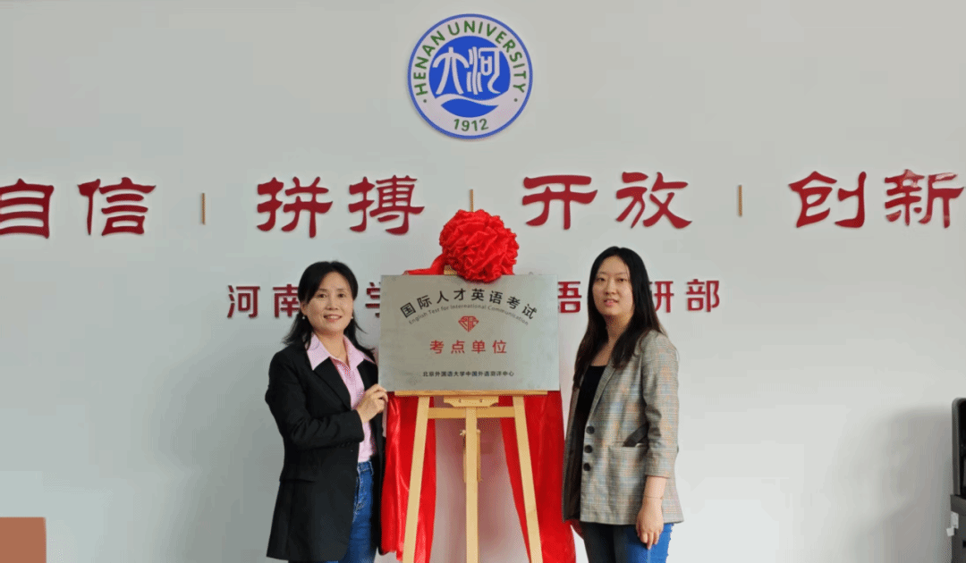 快猫视频 副主任白玉杰与外研社高等营销中心市场主管张忻悦共同为国际人才英语考试考点揭牌。
