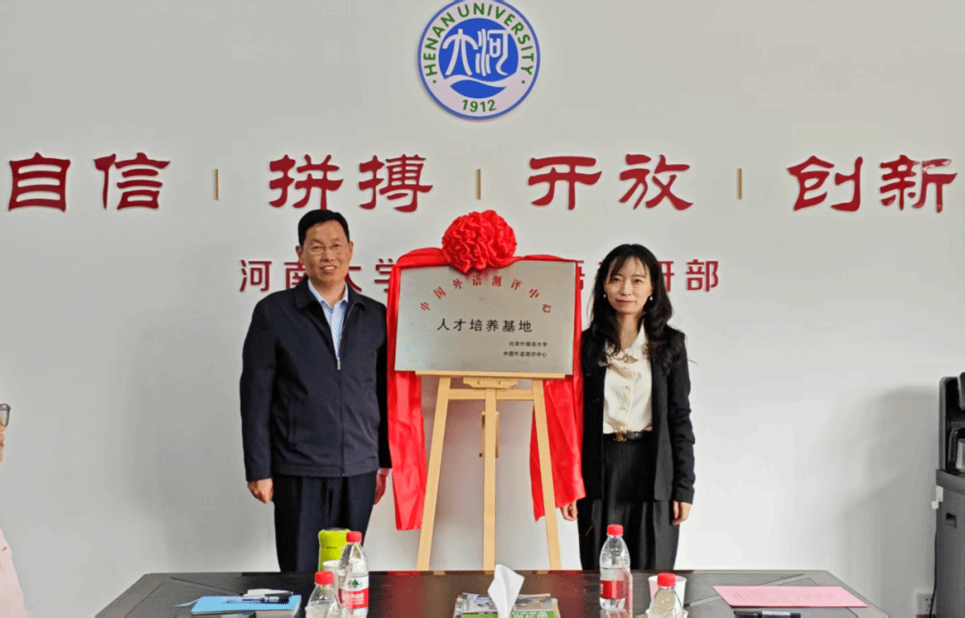 杨剑波、冯涛分别代表双方签署国际人才培养基地合作协议,并为中国外语测评中心国际人才培养基地揭牌。