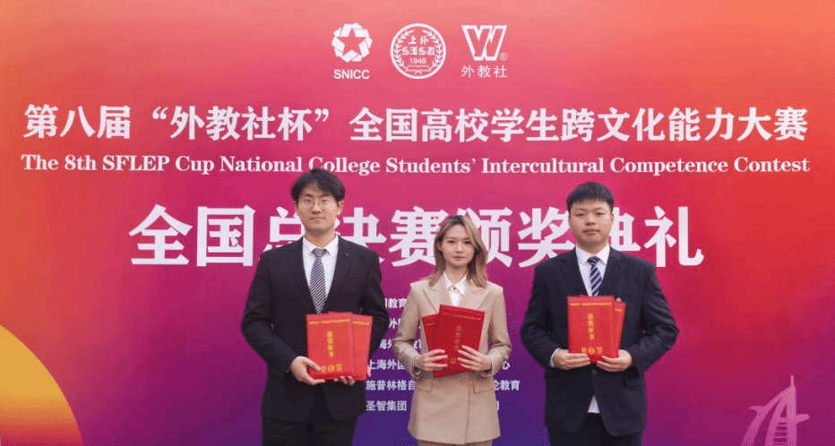 12月12日至14日,第八届“外教社杯”全国高校学生跨文化能力大赛全国决赛总决赛在上海外国语大学落幕。本届大赛规模空前,吸引了全国31个省、自治区、直辖市1050余所高校的3000多名学生参与。经过校赛、省赛层层选拔,最终76支中国学生队伍晋级全国决赛。由我校软件学院刘政锐、马克思主义学院张子瀚、外语学院(高级翻译学院)蒙欣鑫三名同学组成的参赛团队,在快猫视频 郑玮、李冬青、薛丽娜三位教师的悉心指导下,凭借出色的跨文化分析能力、扎实的语言功底与默契的团队协作,荣获全国二等奖,其参赛案例从众多案例中脱颖而出,斩获“优秀案例奖”。