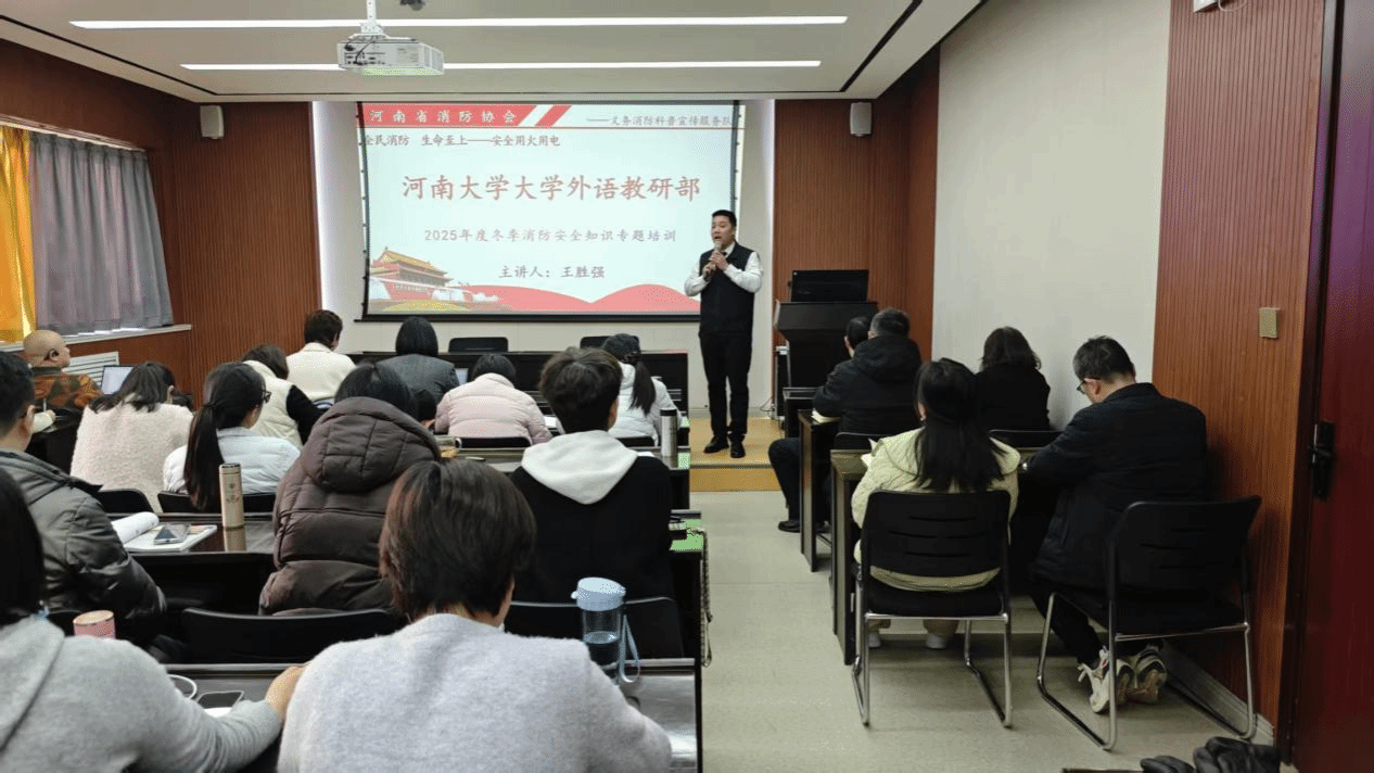 为深入学习贯彻习近平总书记关于安全生产系列重要论述精神,按照上级要求,围绕“全民消防、生命至上——安全用火用电”年度主题,汲取近期省内外火灾事故教训,防范火灾风险,提升教职工消防安全意识与应急避险、自救互救能力,快猫视频 于12月18日下午在大会议室召开2025年度冬季消防安全知识专题培训。培训由教研部党委副书记、副主任蒋框主持,全体教职工参会,特邀河南省消防协会义务消防科普宣传服务队王胜强主任主讲。