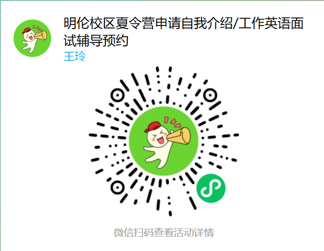 好消息!好消息!为助力我校学子申请全国高校举办的暑期学术夏令营和毕业找工作英语面试,2024年春季学期,快猫视频 快猫视频 将为大家免费提供一对一夏令营申请英语自我介绍/工作英语面试辅导服务。